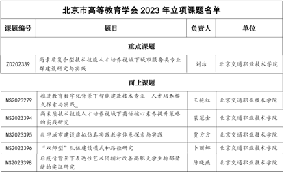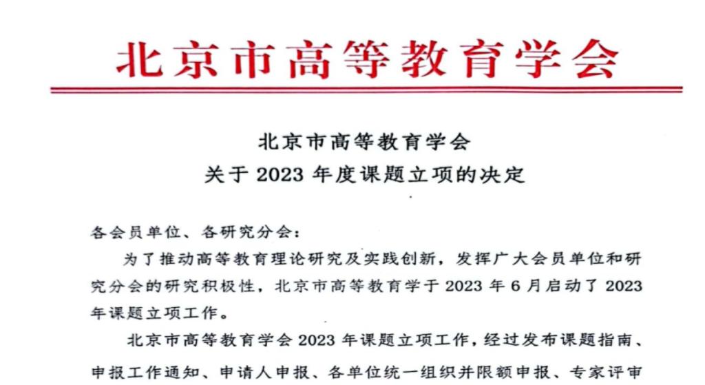 11月25日,北京市高等教育学会召开2023年学术年会暨理事会,公布了2023年度课题立项结果,学院申报的6个项目全部获批,其中重点课题1项、面上课题5项。