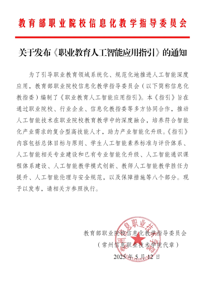 信息化教指委将联合职业院校、行业企业编制中高本贯通的人工智能通识课程标准。