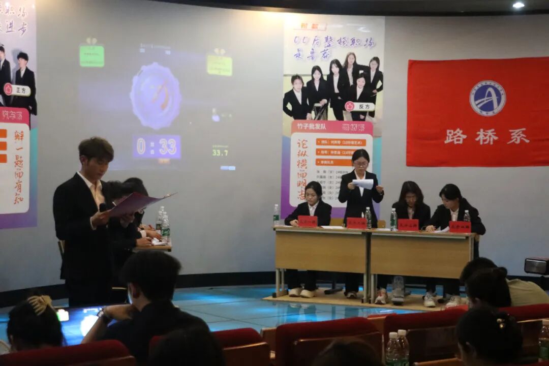 决赛现场,双方围绕“00后整顿职场是进步还是鲁莽”展开激烈交锋。正方“你管我对不队”以“职场革新需要青年力量”为切入点,从00后的规则意识、创新思维出发,指出其敢于打破陈规的行动是推动职场生态优化的进步之举;反方“竹子批发队”则立足“职场现实与责任担当”,强调00后在经验不足的情况下贸然“整顿”,可能导致团队协作效率降低,实为鲁莽之举。质询环节中,双方辩手紧扣核心论点,攻防转换行云流水。正方三辩以近年职场维权案例为据,犀利追问反方“如何界定进步与鲁莽的边界”;反方二辩则以“职场秩序维护”为矛,反问正方“个人诉求是否应凌驾于集体规则之上”。自由辩论阶段,双方更是针锋相对,现场金句频出,掌声不断。总结陈词时,正反方四辩分别以“青年责任”与“理性实践”为落脚点,逻辑缜密地升华观点,引发观众深思。最终,汽车系“你管我对不队”凭借严谨的逻辑架构与出色的临场应变,摘得本届赛事桂冠;路桥系“竹子批发队”荣获亚军。“竹子批发队”四辩张傲同学以清晰的逻辑与感染力十足的陈词,荣获“最佳辩手”称号。